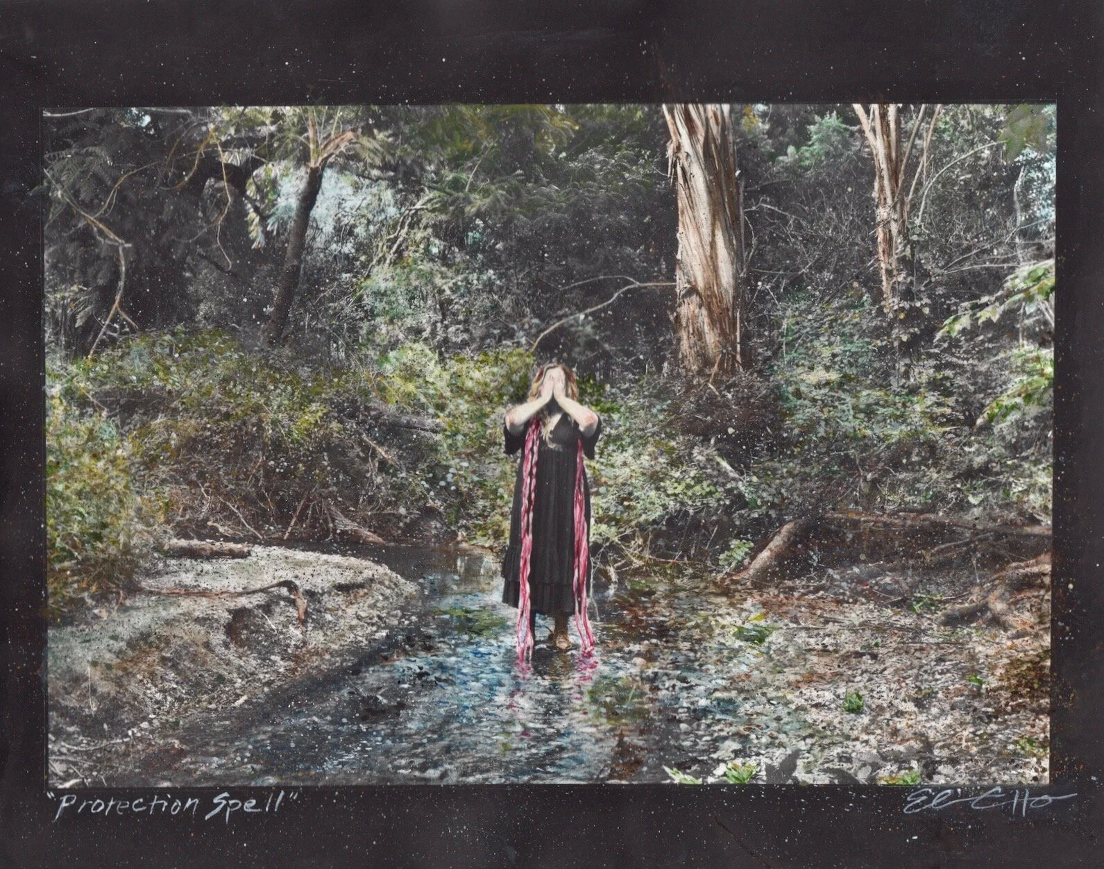 “Your Abuela’s Prayers Still Protect You” invokes rituals in reaction to the patriarchy. Infuenced by traditional practices from the intersections of her heritage, Eliana Cetto conjures a healing space for reclamación. In the landscape, Cetto performs commentary on feminine vulnerability and strength. Her actions critique cultural stereotypes and react against gender violence through the language of curanderismo, traditional healing. Adorned with the communal ribbons from her “Gathering the Embers” performances, Cetto calls to her community to carry the erased legacies of womxn and non-binary heroes into the future. Representations of her grandmothers’ rituals become altars to self care, printed on silk and encapsulated in handmade nichos. “Your Abuela’s Prayers Still Protect You” is a gesture towards the practices of our ancestry, used for navigating contemporary life as a queer, feminist Latina.